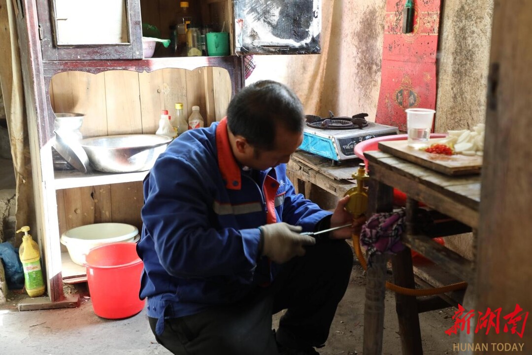 在新隆镇野乐村、山田湾村等地,由县城管局、燃气公司、新隆镇政府及村干部组成的安全服务队带着金属波纹管、过滤堵截阀等设备,为困难大众免费上门替换燃气设备。工作人员熟练地拆开老旧软管、装置新设备、进行气密性检测,每一个环节都详尽谨慎,保证用气安全。